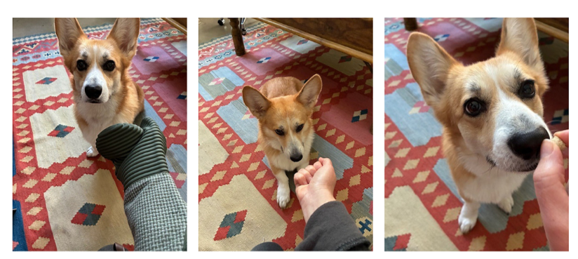 2. Treat toss. I love using the treat toss with puppies, its fun for them to catch from the air but also a great training tool when teaching place and recall games.